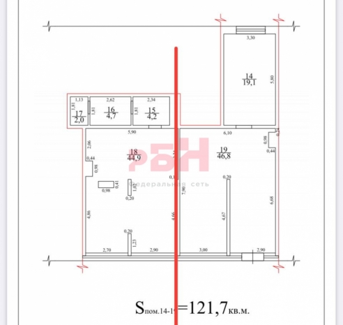 - На плане красной линией обозначено как возможно разделить помещения.